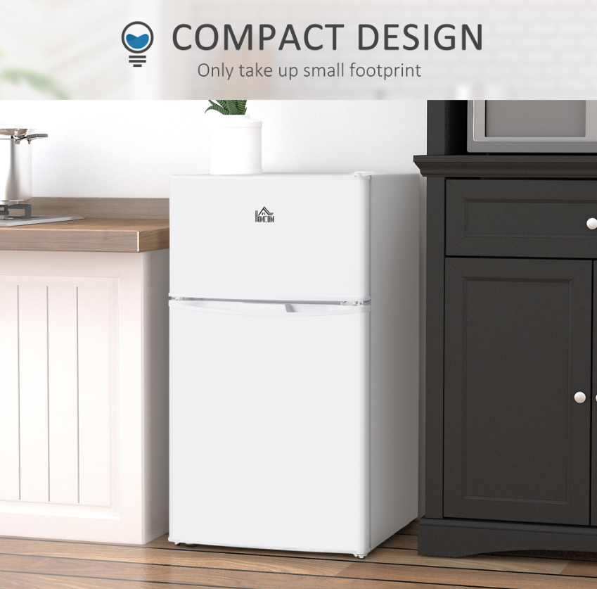 • Whether you are looking for a mini fridge for your apartment, motor home, dormitory, office? Why not choose a portable mini compressor refrigerator from HOMCOM? Features 2 zones: refrigerator and freezer, allow you to keep various food like drinks, vegetables, ice cream and more. And with a thermostat to adjust the temperature. Considerate design like reversible door, interior light and adjustable feet provide more convenience. Don't hesitate and take it home!