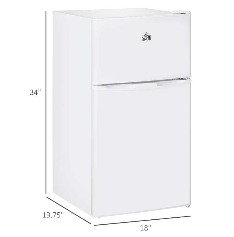 3.2 Cu.Ft Double Door Mini Fridge w/ Freezer, Adjustable Shelf for Dorm