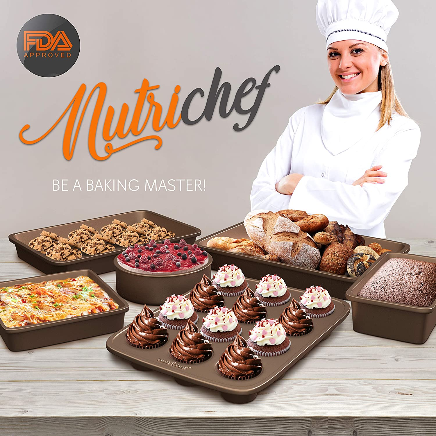 6-Pcs Nonstick Bakeware Set Baking Sheets, Non-Grease Cookie Trays, Wide & Squar