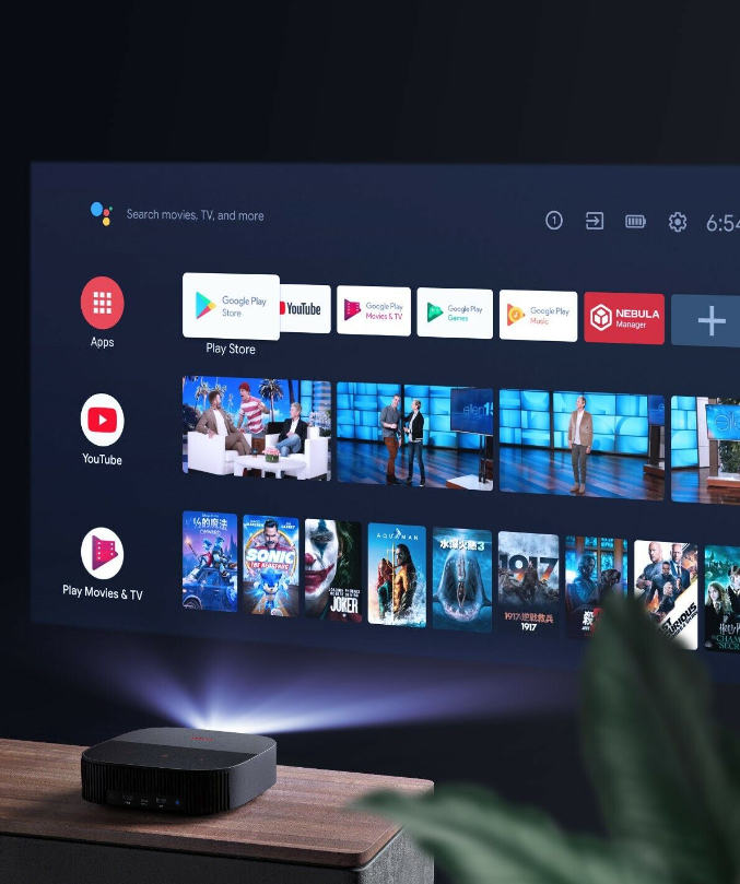 Enjoy portable big screen entertainment with the Nebula Vega. With Full HD clarity, 500 lumens brightness, it also boasts dual stereo speakers and Android TV apps. It keeps going for up to 3 hours of entertainment with a rechargeable battery, and features Keystone correction and Digital Zoom for precise projection.