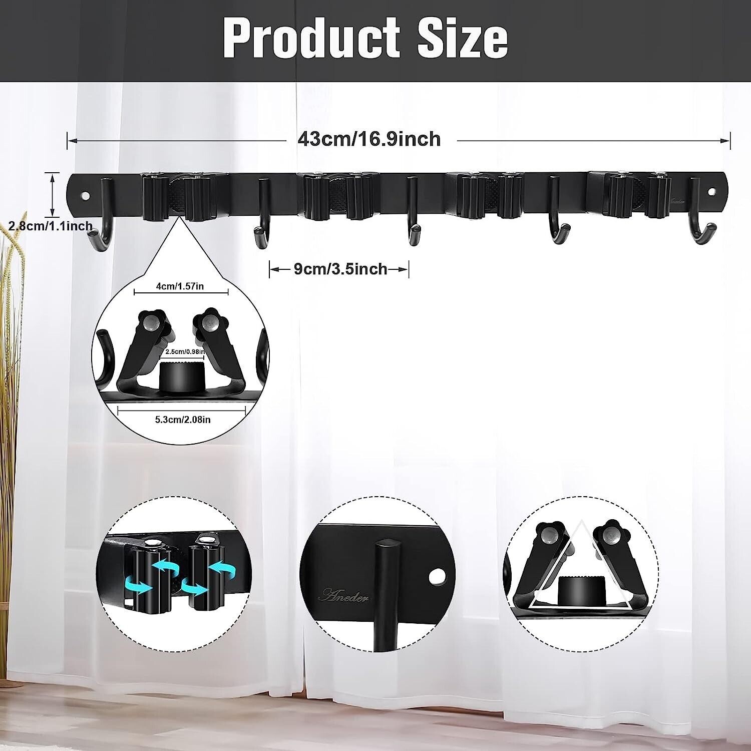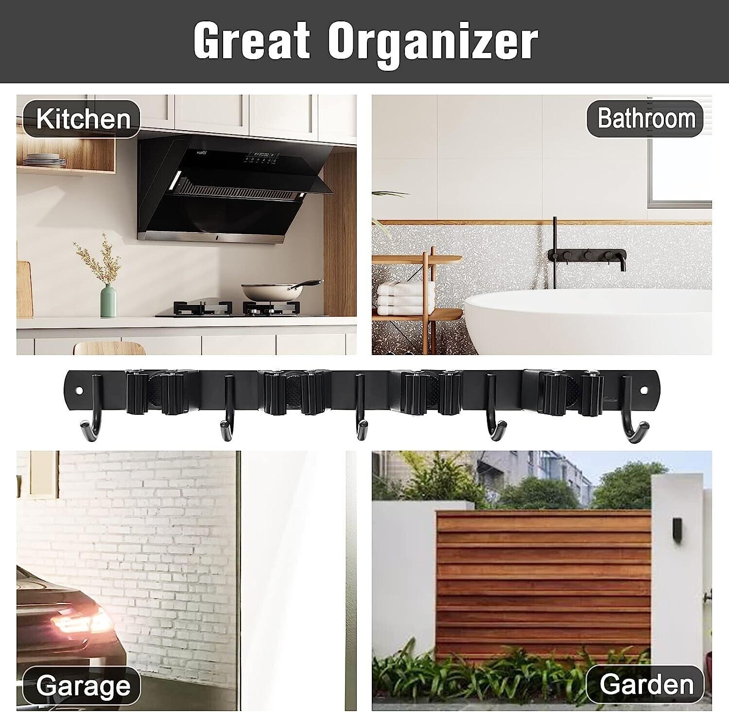Broom holder wall mount black