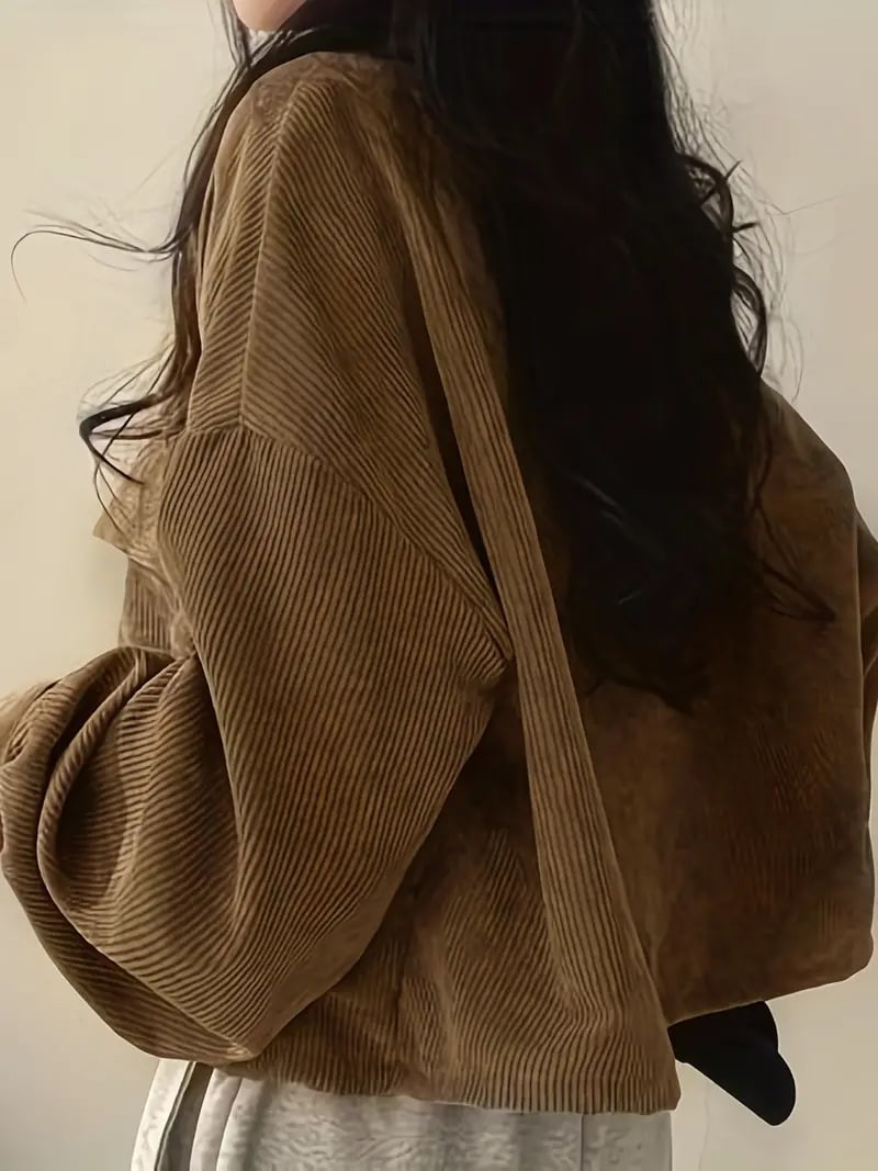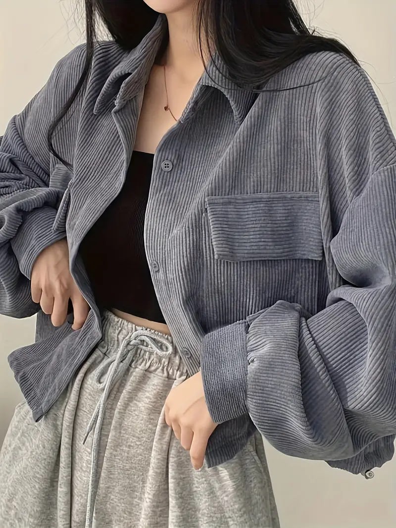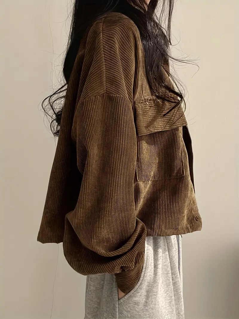 Button Front Flap Pockets Jacket, Casual Long Sleeve Jacket For Fall & Winter, Women's Clothing