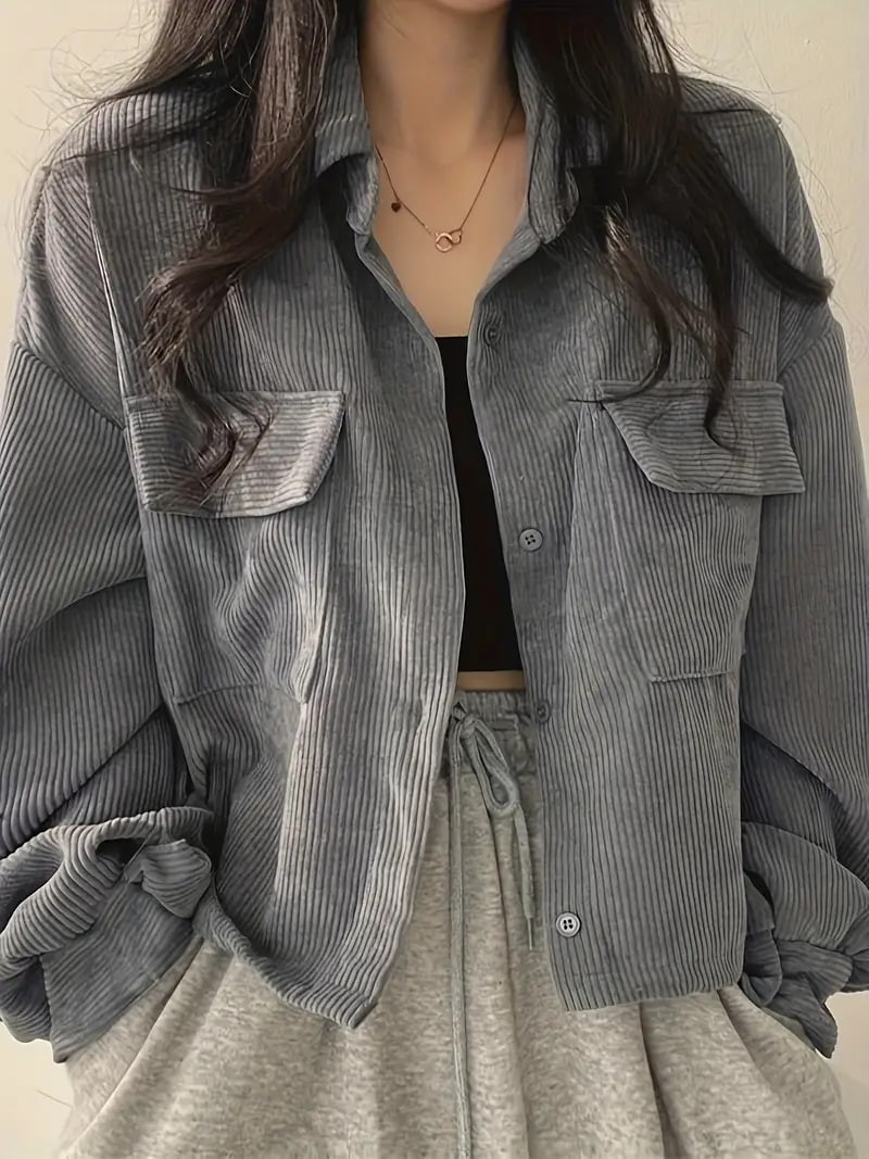 button front flap pockets jacket casual long sleeve jacket for fall winter womens clothing details 0button front flap pockets jacket casual long sleeve jacket for fall winter womens clothing details 0