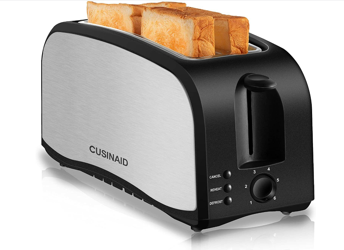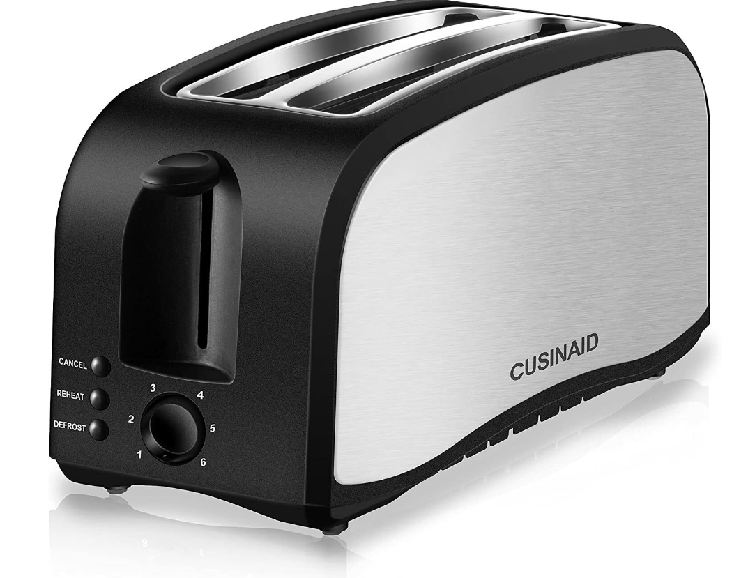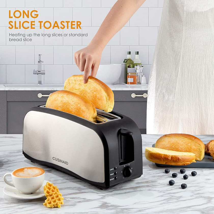 CUSINAID 2 Long Slot Toaster (4 Slice) Stainless Steel STO35 Black