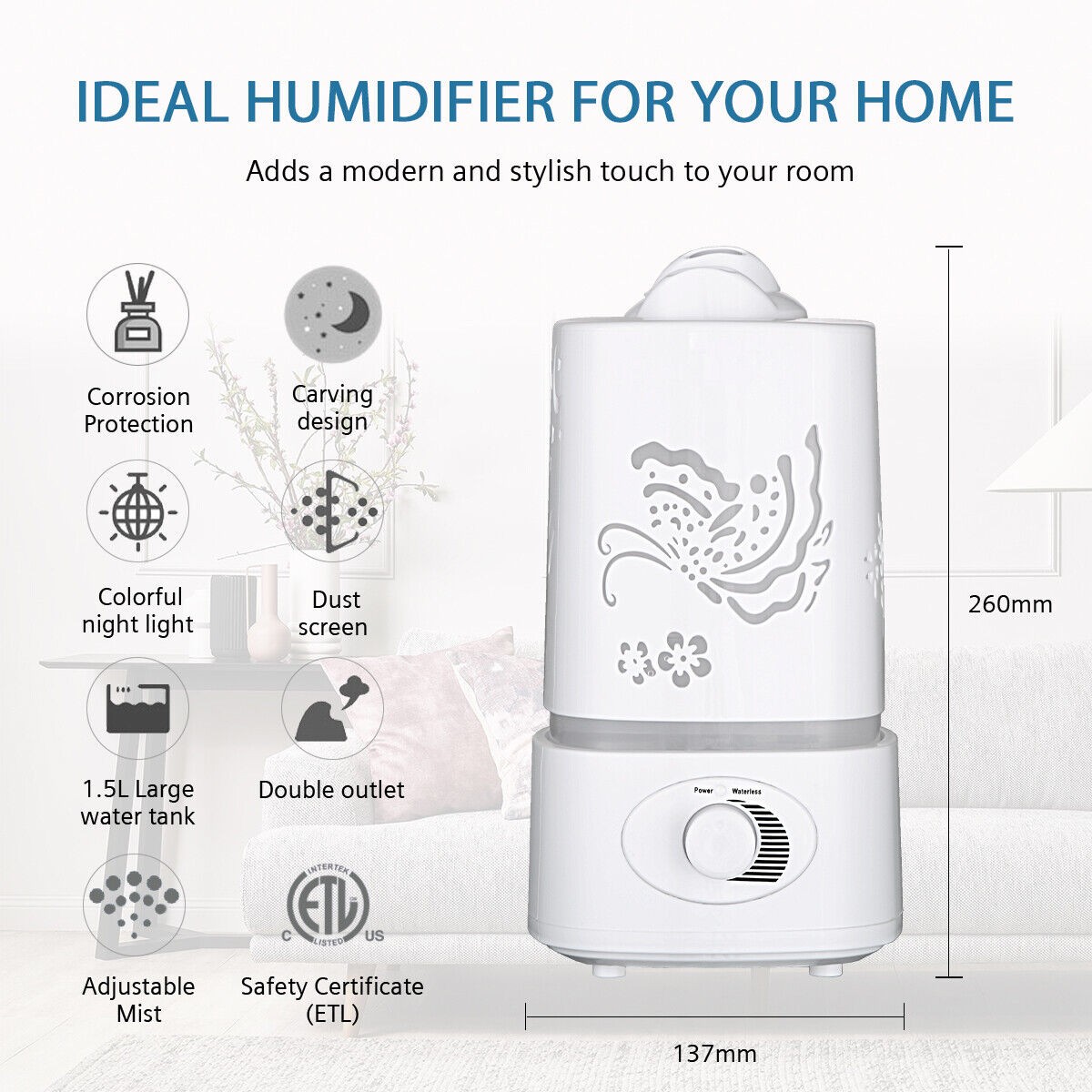 Hodiax Quiet Ultrasonic Humidifier 2-in-1 Diffuser Cool Mist Maker Whole House