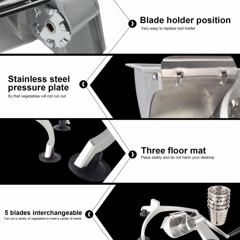 1. Come with 5 different drums blades, which is great for cheese, vegetables, potatoes, nuts, onions, salad, pizza toppings and more.
