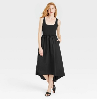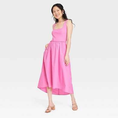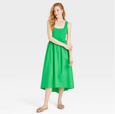 Style yourself a sleek look that you can easily take from lunch meeting to the lounge by adding the Sleeveless Ballet Dress from A New Day to your closet. Made from cotton-blend fabric with a hint of spandex for all-day comfort, this short-sleeve dress features a classic square neckline with a midi length, making getting ready for any day an effortless affair. The pullover T-shirt dress is tailored in a midi silhouette that flares down from the waist with soft gathered accents, along with high and low hem to give you a pretty look with comfy movement. Pair it with oversized sunglasses and sandals and you're ready to go.