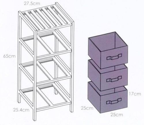 Wooden Cabinet with 3 Grey Boxes Bedroom Bathroom Shelf Cupboard Storage Unit