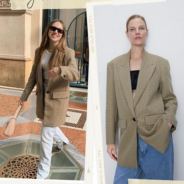 CHECK MASCULINE-STYLE BLAZER IN A CAMEL BROWN & BLACK COLOUR